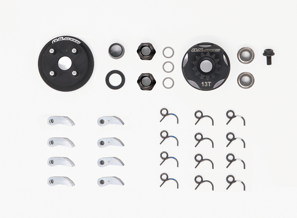 - 1/8オフロードカー用に開発された4ピースクラッチで、2種類のクラッチシューとフライホイルナット、3種類のクラッチスプリングの組み合わせにより、コースレイアウトや路面状況に応じて細かな調整が可能です。 従来の3ピースクラッチと比べクラッチミートがスムーズで燃費面においてもアドバンテージを発揮します。
